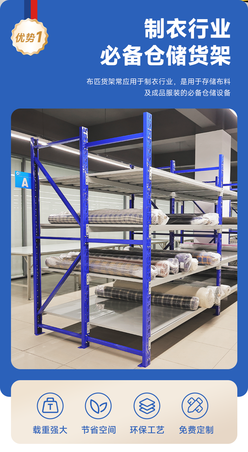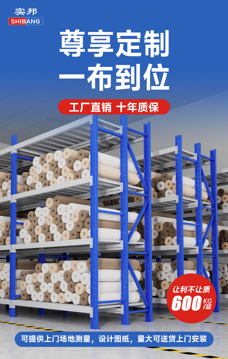 實邦重型倉庫貨架金屬庫房貨架布匹布料展示架倉儲儲藏架可定制