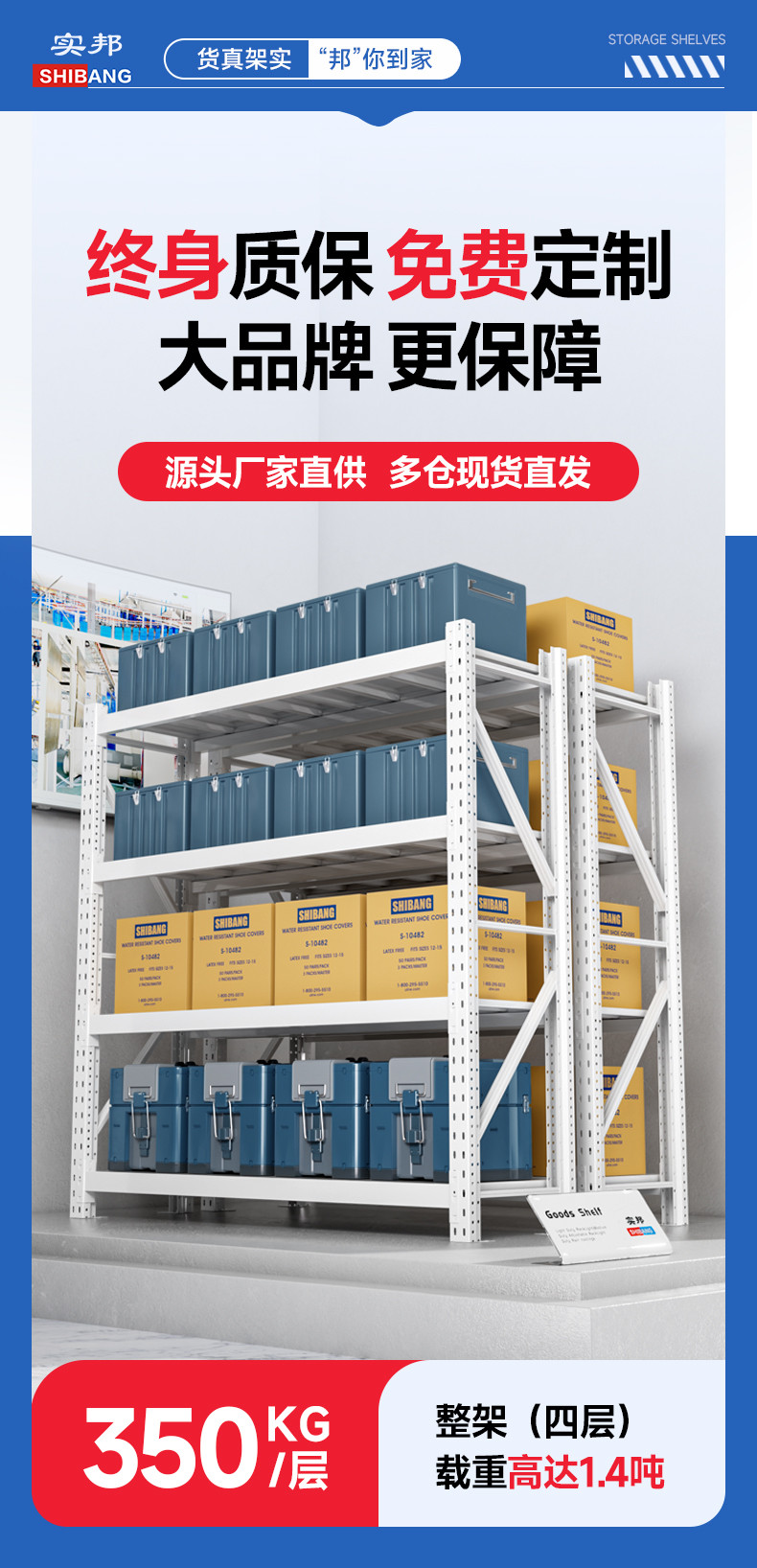 實邦重型貨架倉儲貨架多層貨物架倉庫貨架重型加厚五金置物架鐵架