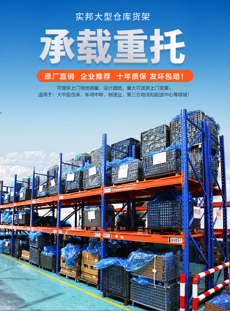 實邦重型倉儲貨架橫梁式托盤多層架工業(yè)定制高位倉庫板材貨架定做