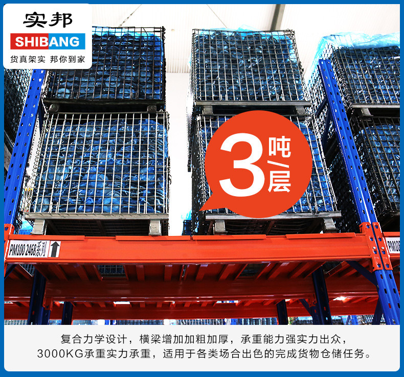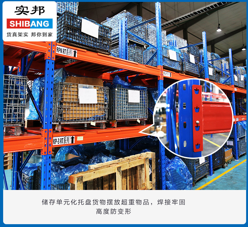 實邦托盤貨架重型貨架加厚倉儲高位工業(yè)倉庫庫房貨架承載3噸/層