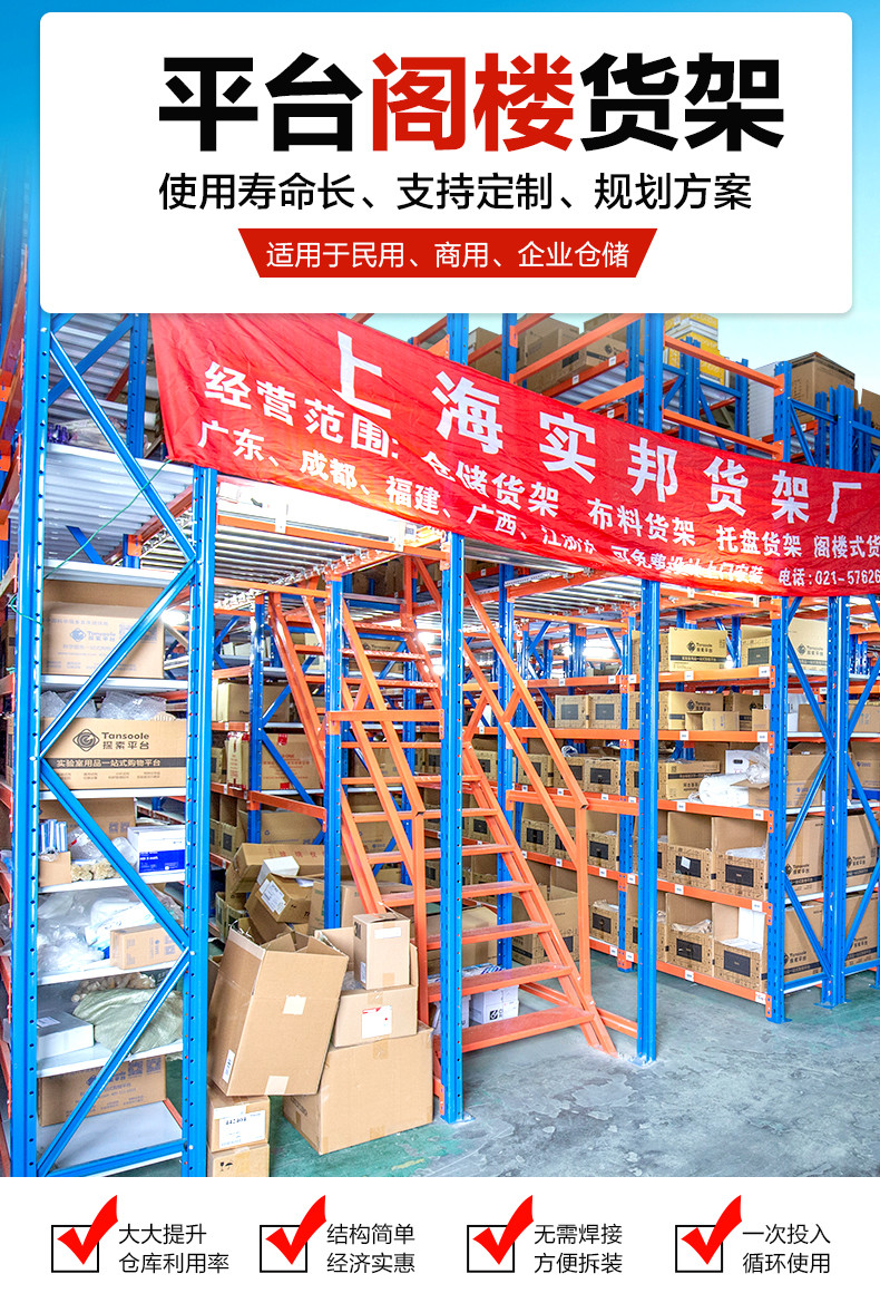 實(shí)邦閣樓平臺(tái)貨架倉庫夾層廠房隔層可拆卸閣樓搭建倉庫平臺(tái)鋼結(jié)構(gòu)